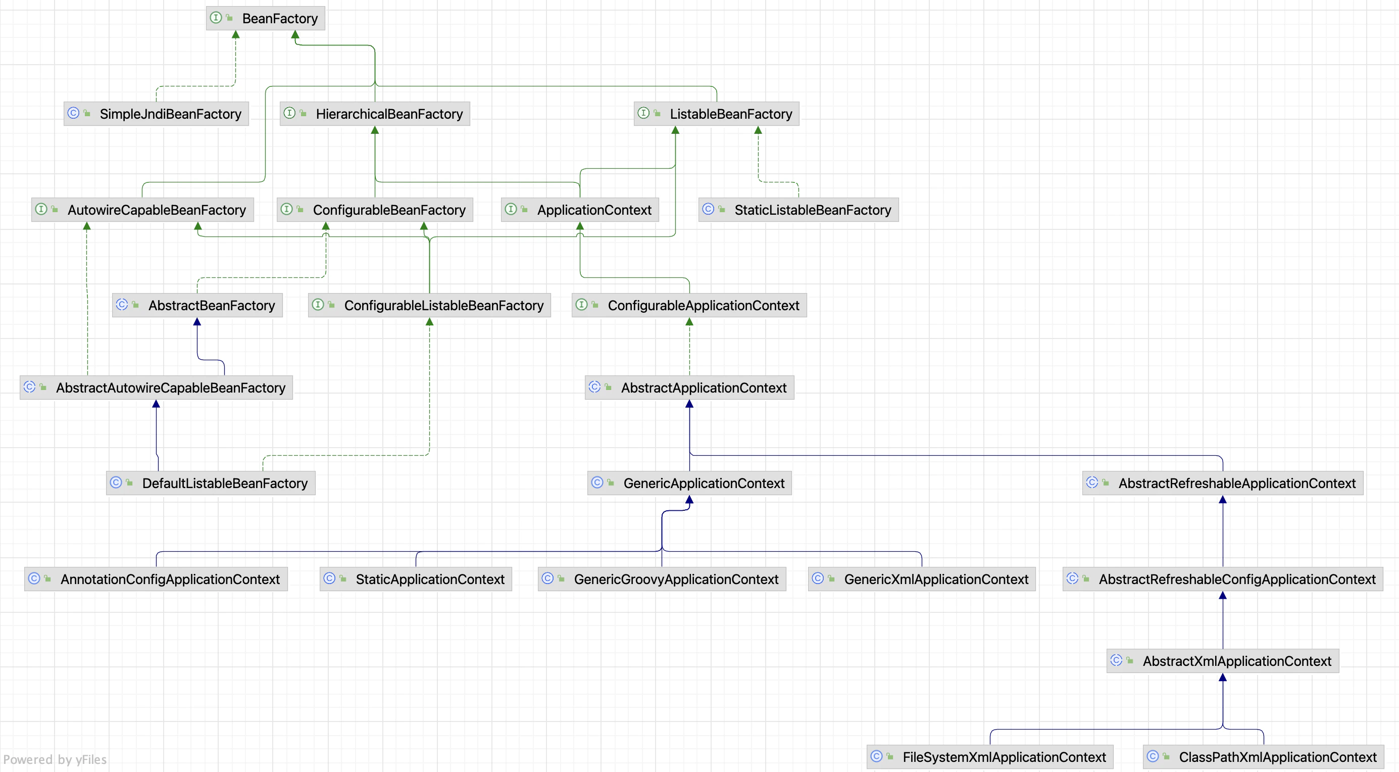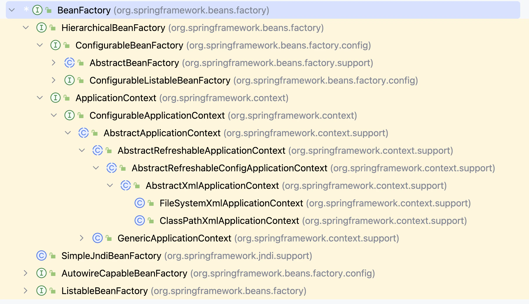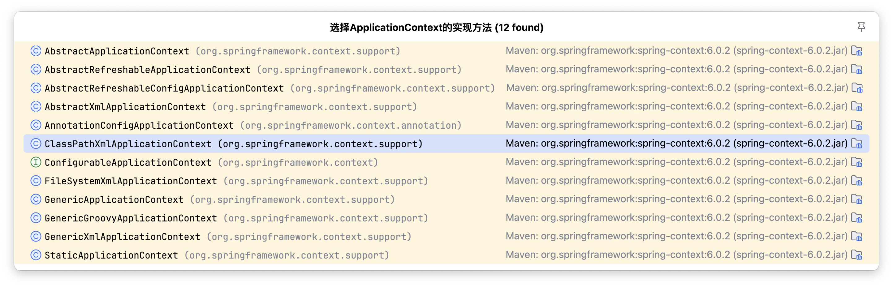 | ConfigurableApplicationContext | ApplicationContext 的子接口,包含一些扩展方法 refresh() 和 close() ,让 ApplicationContext 具有启动、关闭和刷新上下文的能力。 |