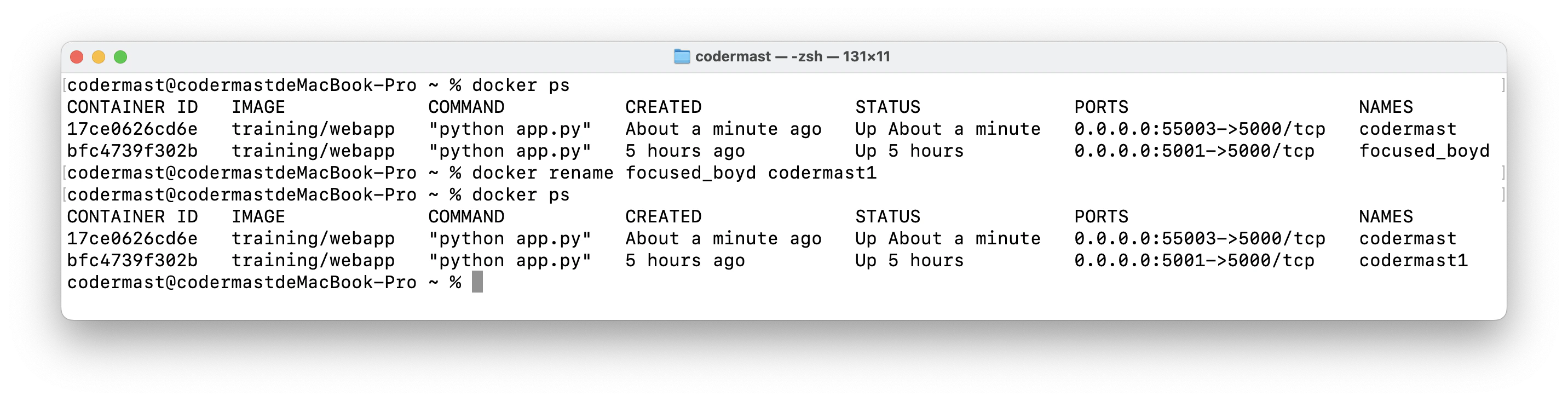 focused_boyd 为原容器名,codermast1 为要自定义的名称。
