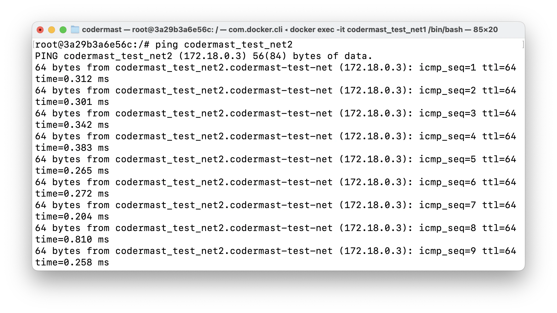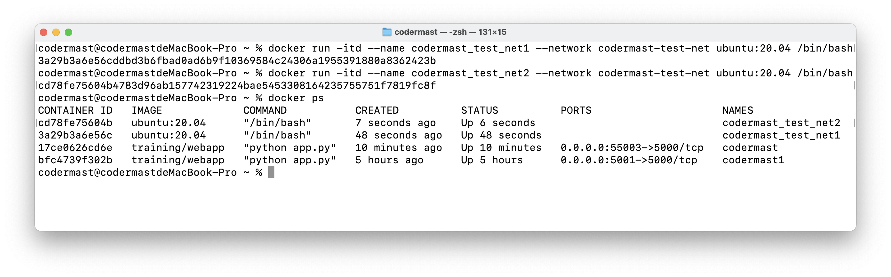 codermast_test_net1 容器和 codermast_test_net2 容器建立了互联关系。